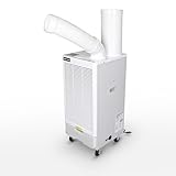 J&Sの移動式スポットエアコン PAC101-Aは、単相100V対応のスポットクーラーです。自動首振り機能はありませんが、可動式の冷風ダクトを備えています。