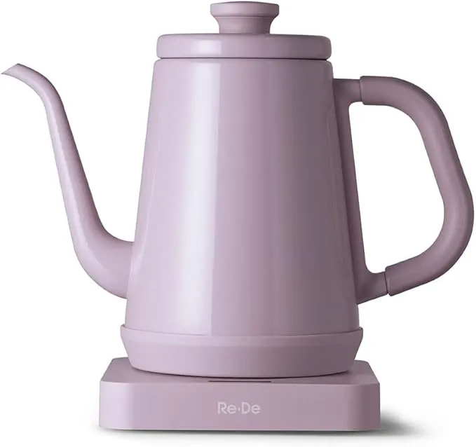 Re・De Kettle RD-K002MPは、公式オンライン限定カラー「モーヴピンク」のおしゃれな電気ケトルです。50℃から100℃まで8段階の温度調節が可能で、飲み物はもちろん、お湯を使う調理にも活躍します。持ちやすさと湯切れの良さを追求したデザインは、ドリップコーヒーにも適しています。ボタンが少なくシンプルな設計で、直感的に操作できます。保温機能も搭載しており、最大30分まで温かい状態を保てます。ステンレスとPP樹脂製で、安全装置も備えています。デザイン性と機能性を兼ね備え、食卓を上品に彩る一台です。