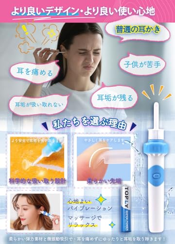 - 振動と吸引のツインシステムで耳垢を効果的に除去